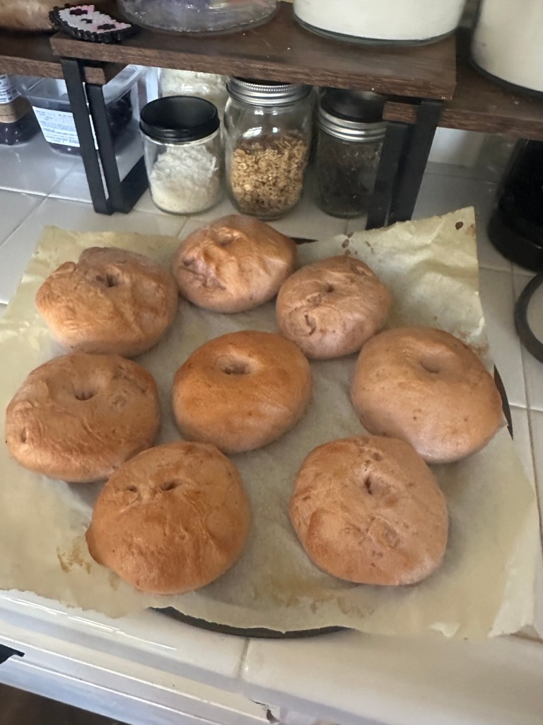 Those of you who know me know I’m always mindful about where my money goes. I try to put it toward the kids first, which doesn’t leave much left for me. That’s why homemade has become the key to just about everything in our house—even bagels. Sunday afternoon turned into a baking project, and by the end of it we had four kinds cooling on the counter: blueberry, cinnamon raisin, jalapeño & cheddar cheese, and strawberry. Never once did I imagine myself making bagels from scratch, but there I was, cranking them out one after another.